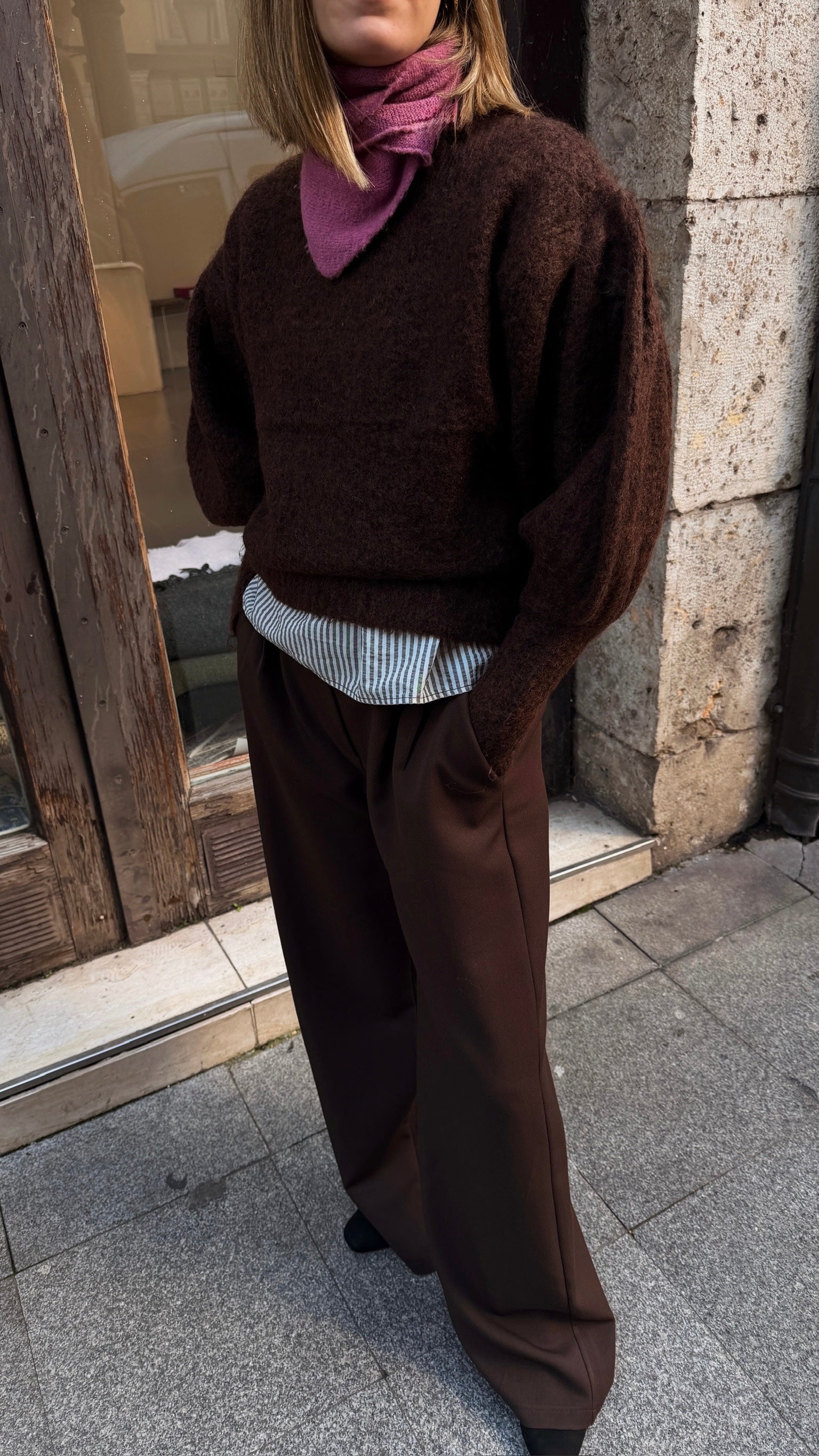 Blusa de rayas con nido de abeja en pecho y mangas.Tejido elástico
