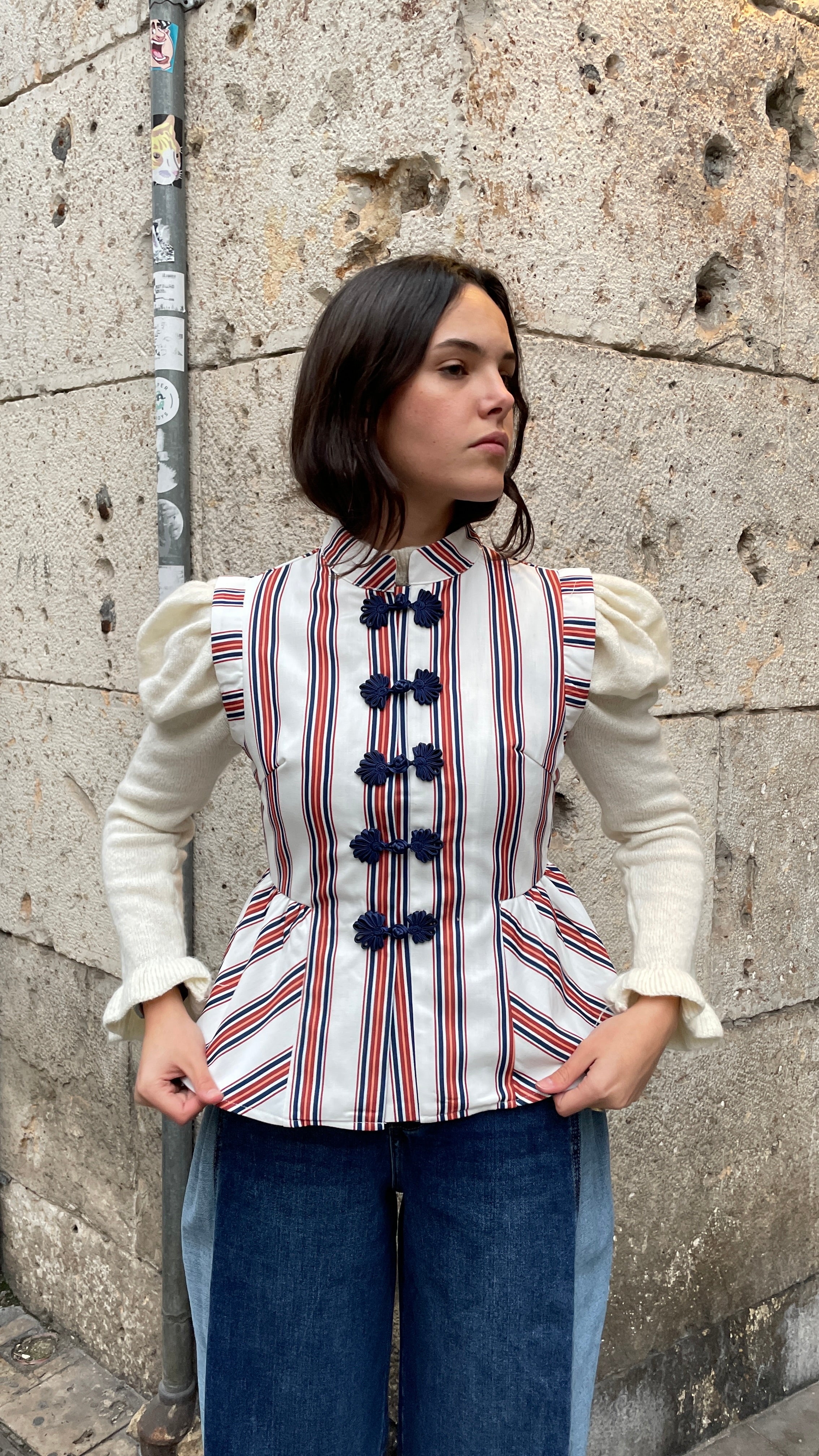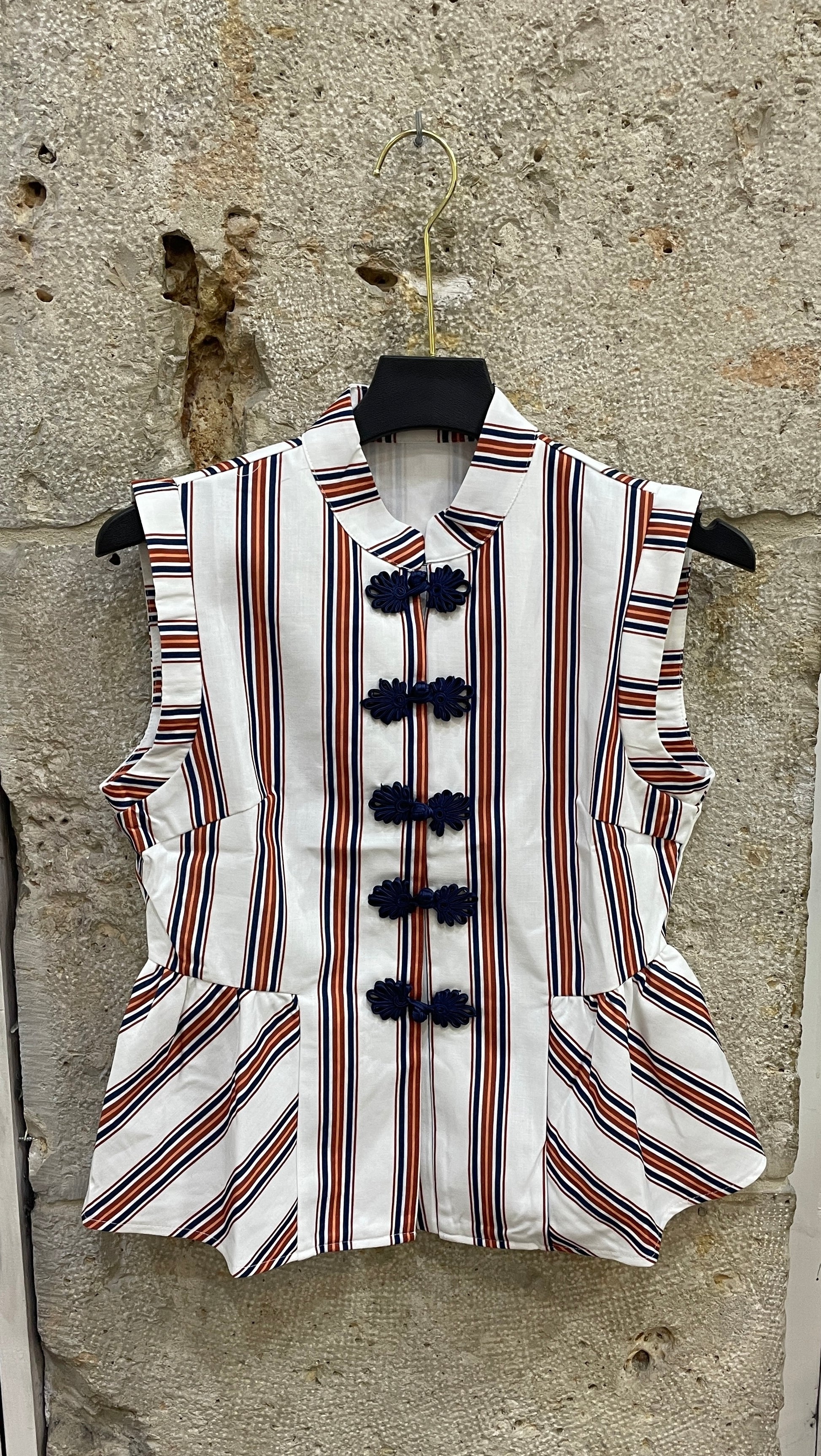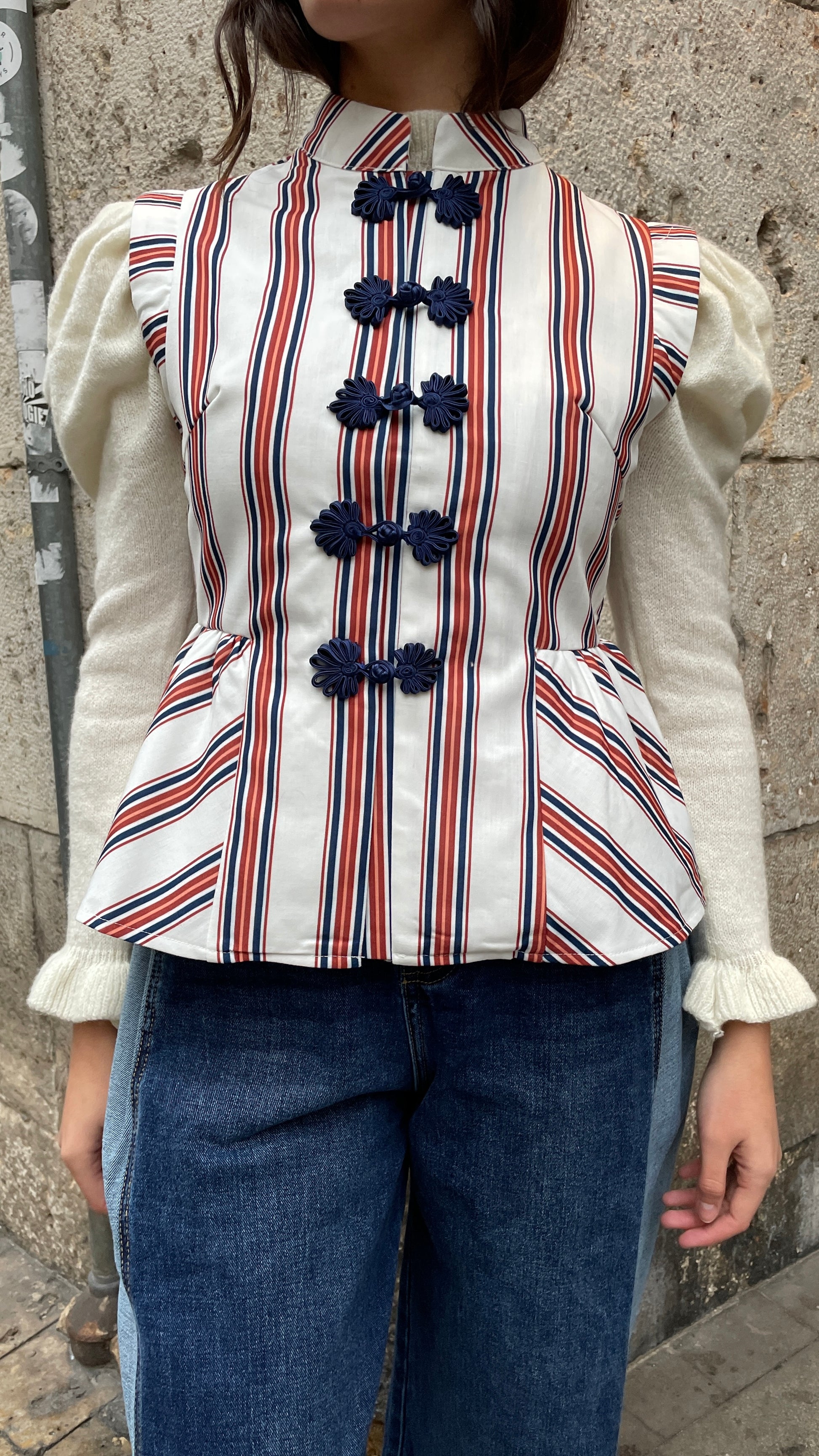 Chaleco de rayas estilo japones ajustado en la cintura