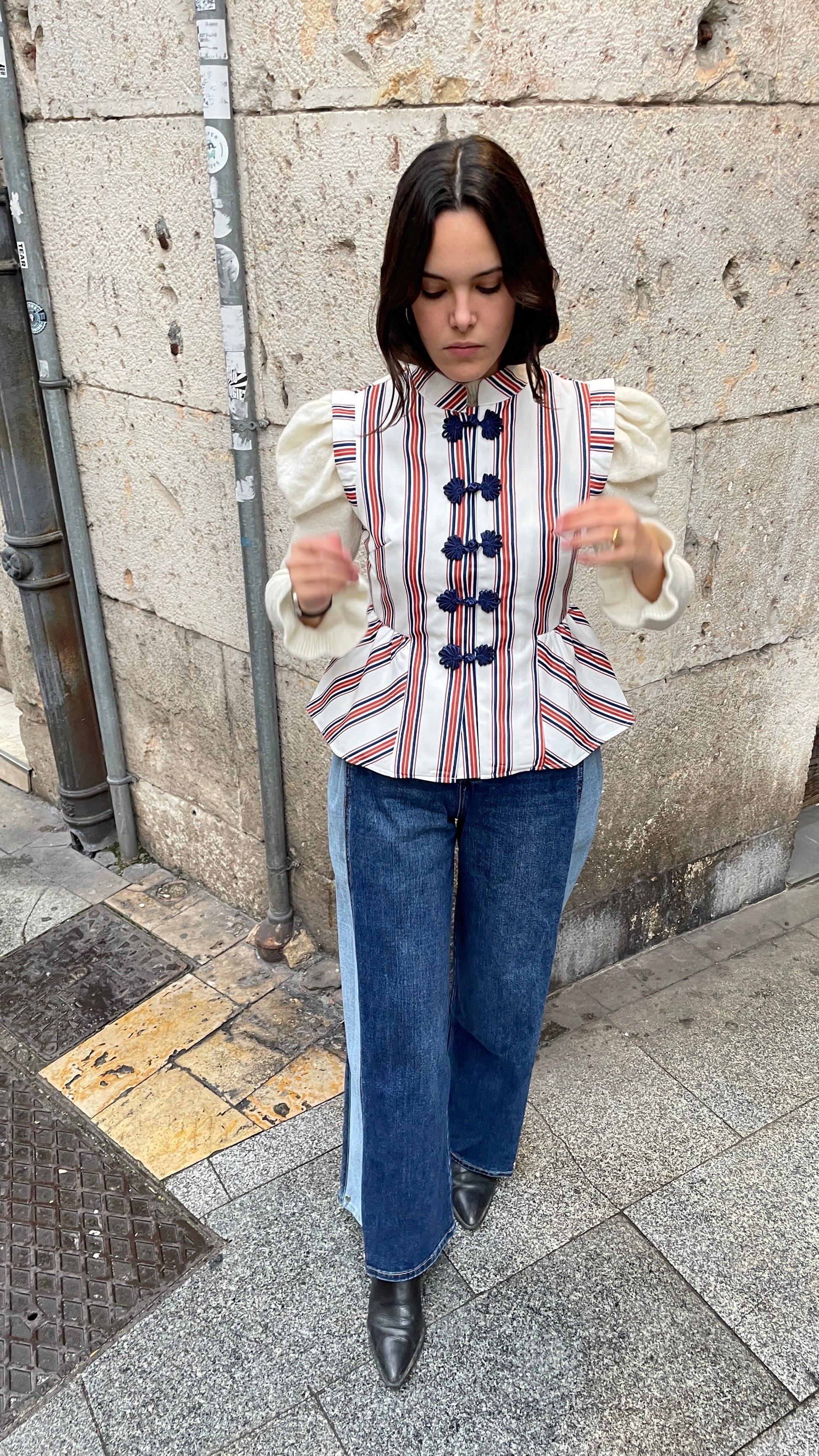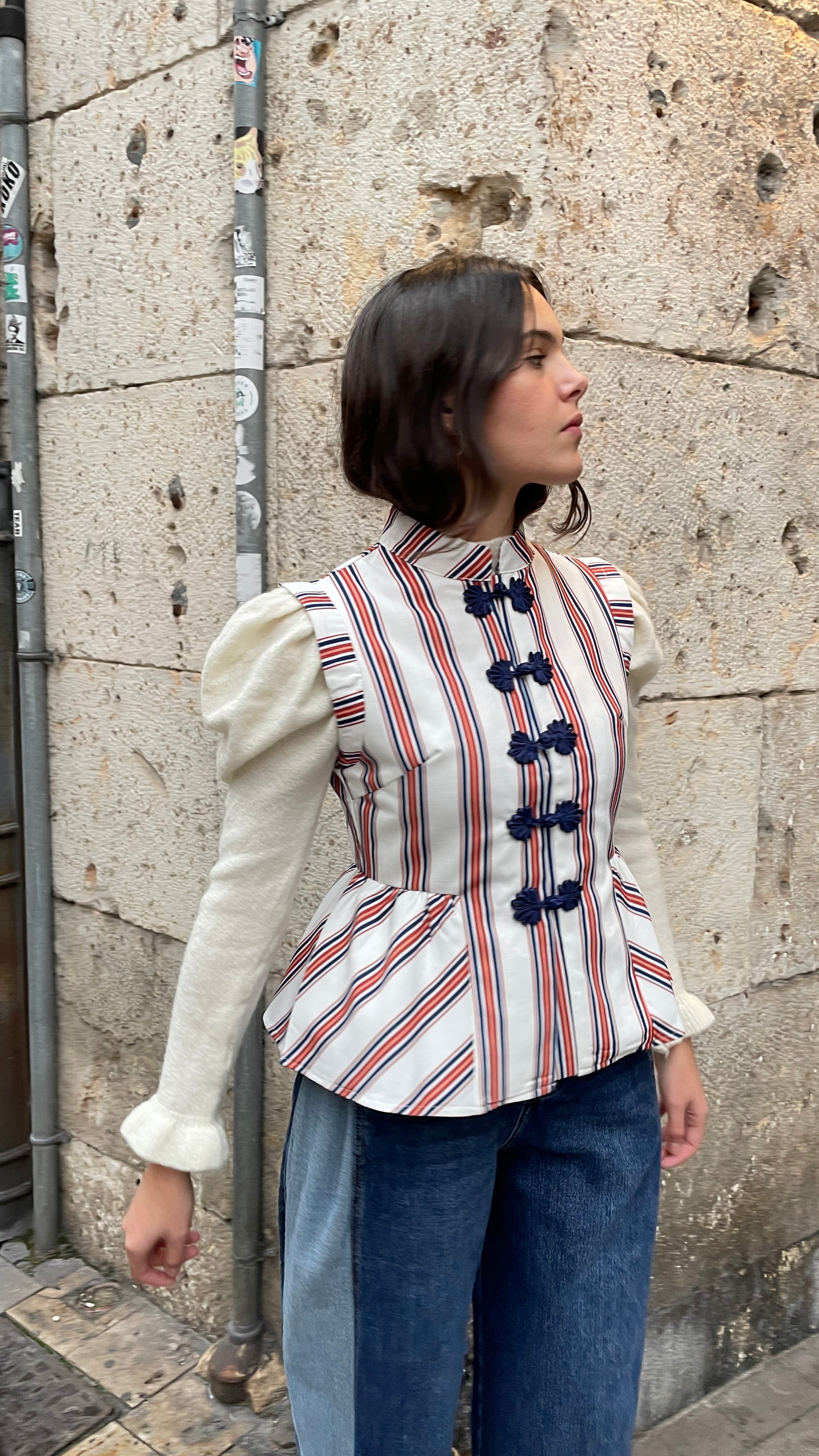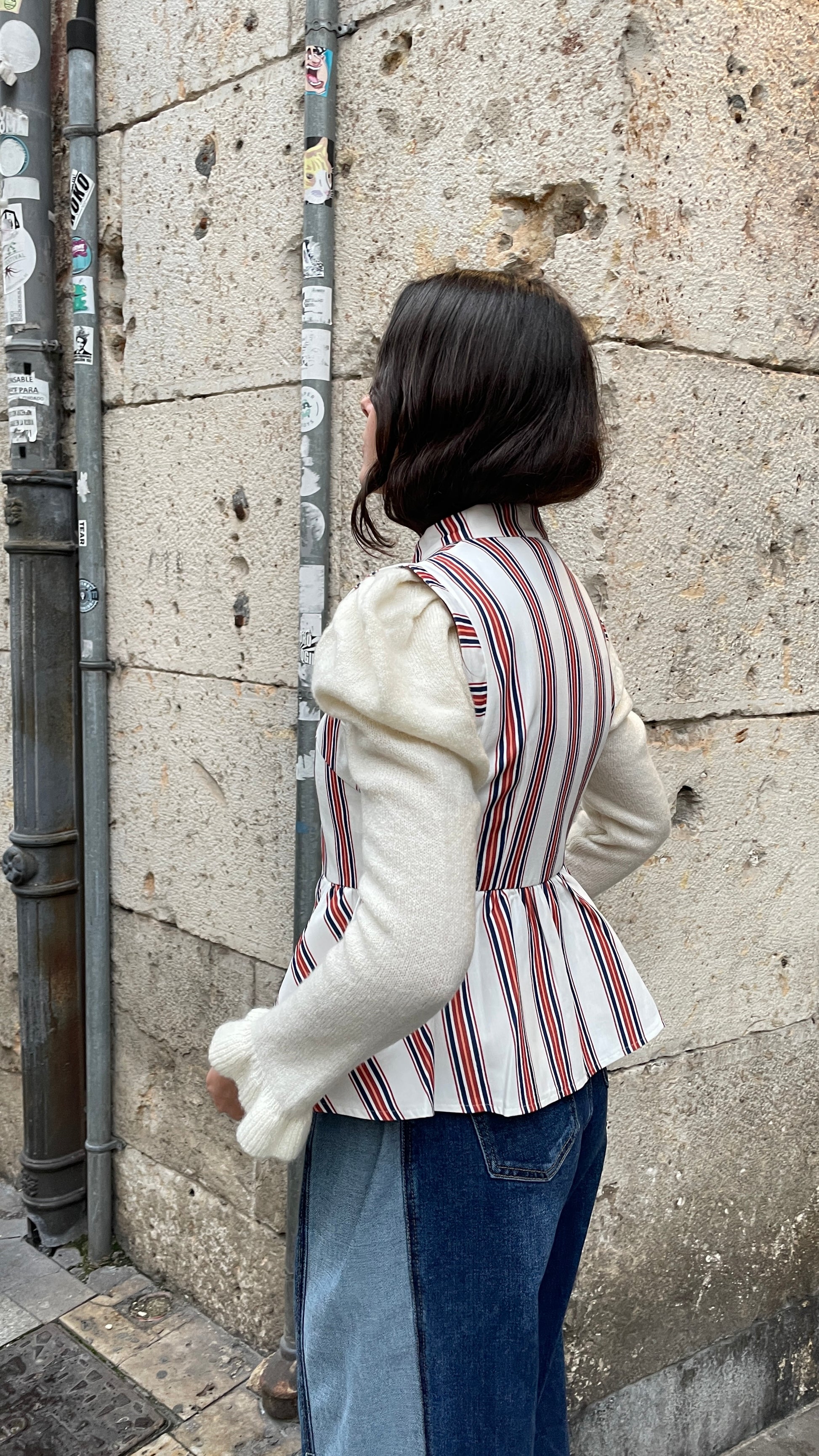 Chaleco de rayas estilo japones ajustado en la cintura