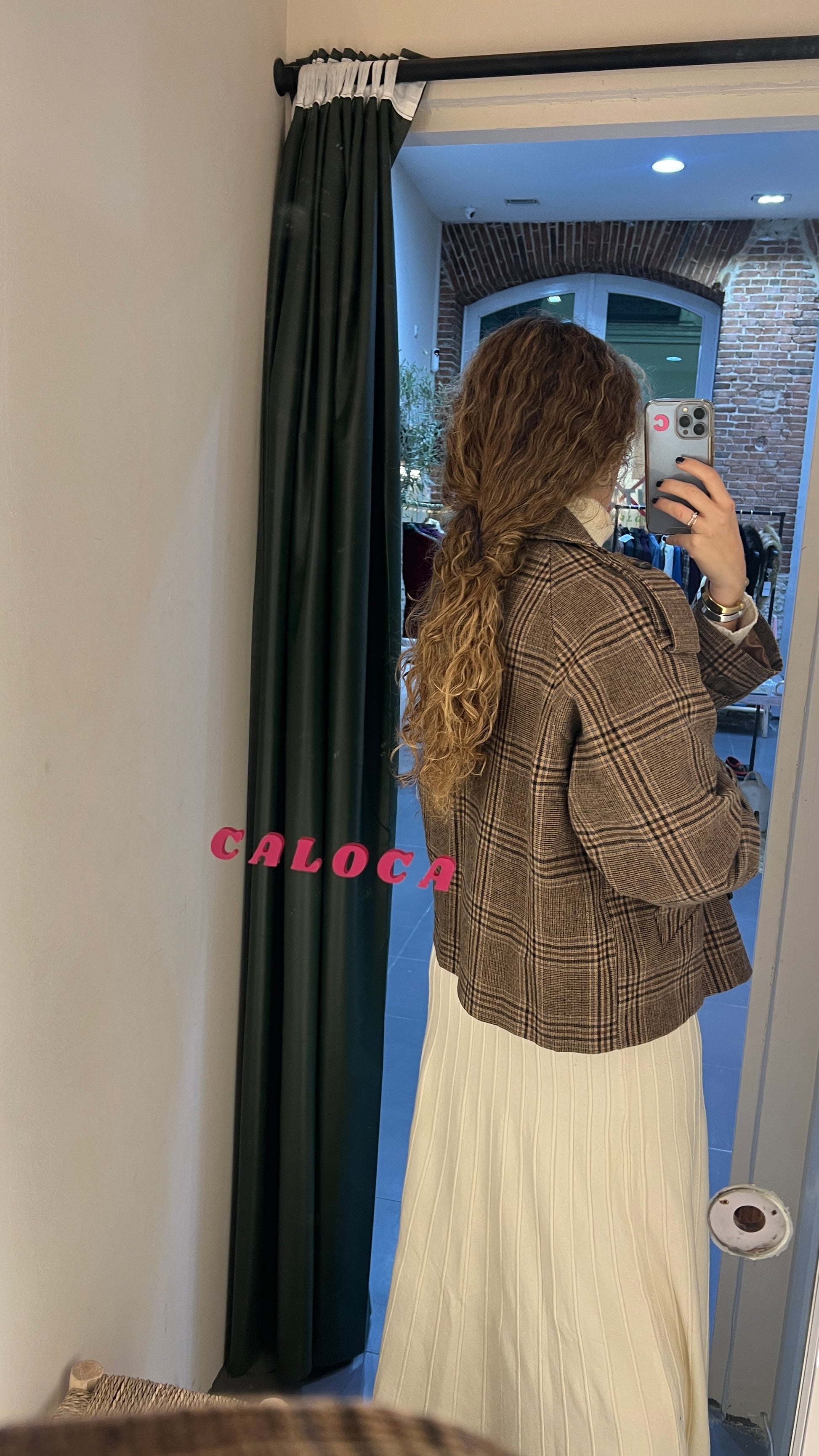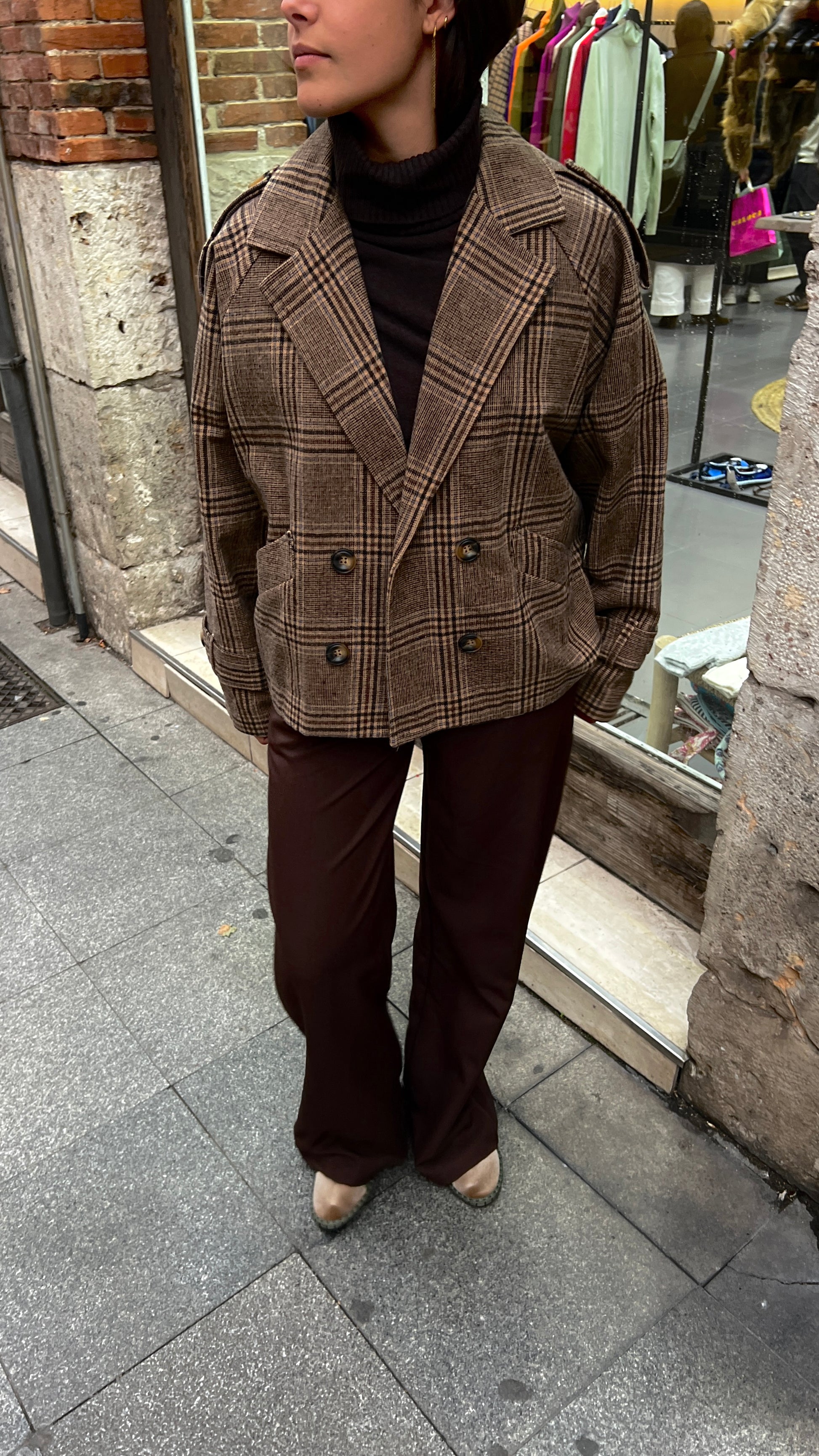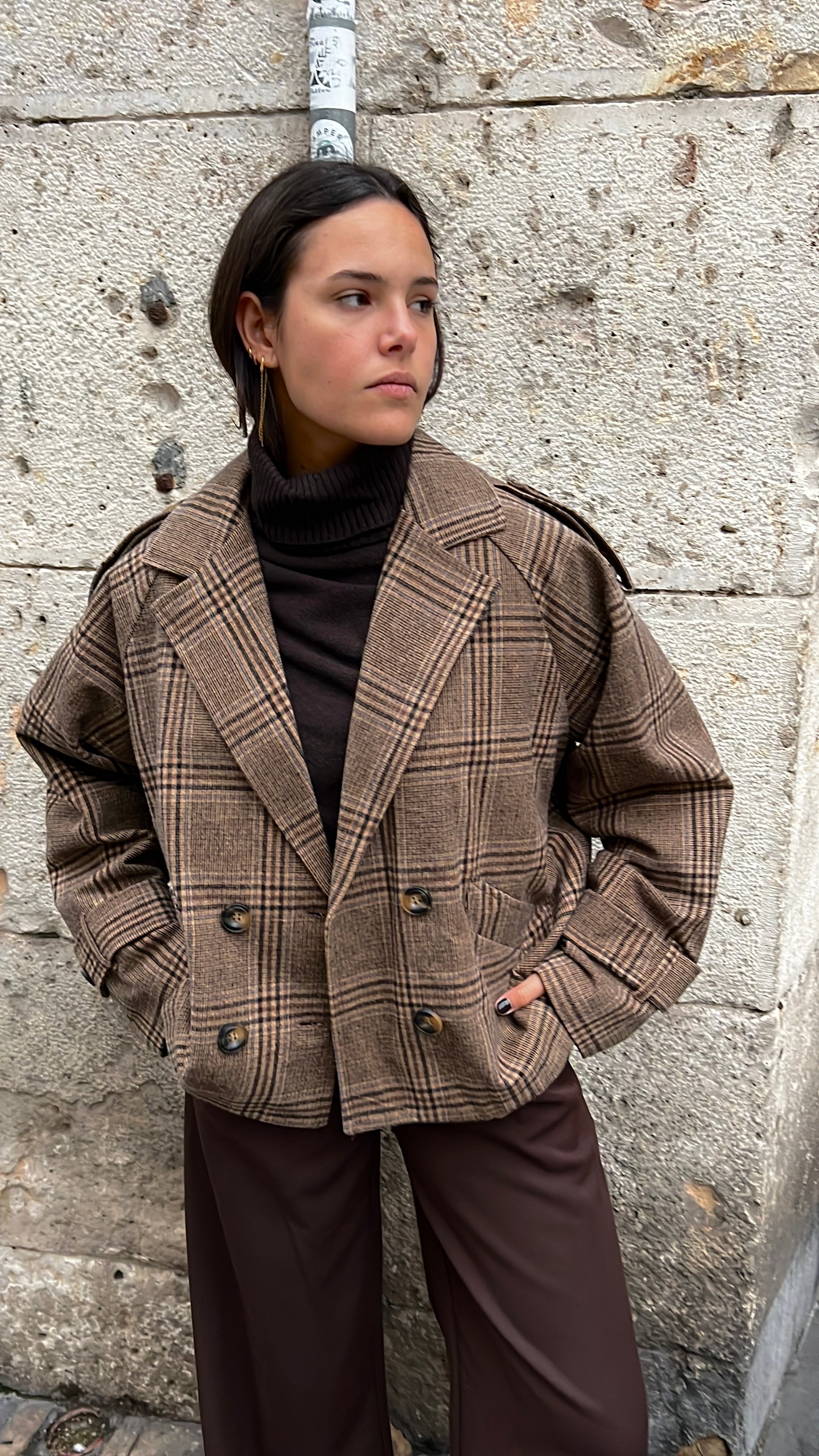 Chaquetón oversize en tejido de cuadros. Bolsillos laterales. Talla única que equivale a cualquier talla comprendida entre la S y la L.