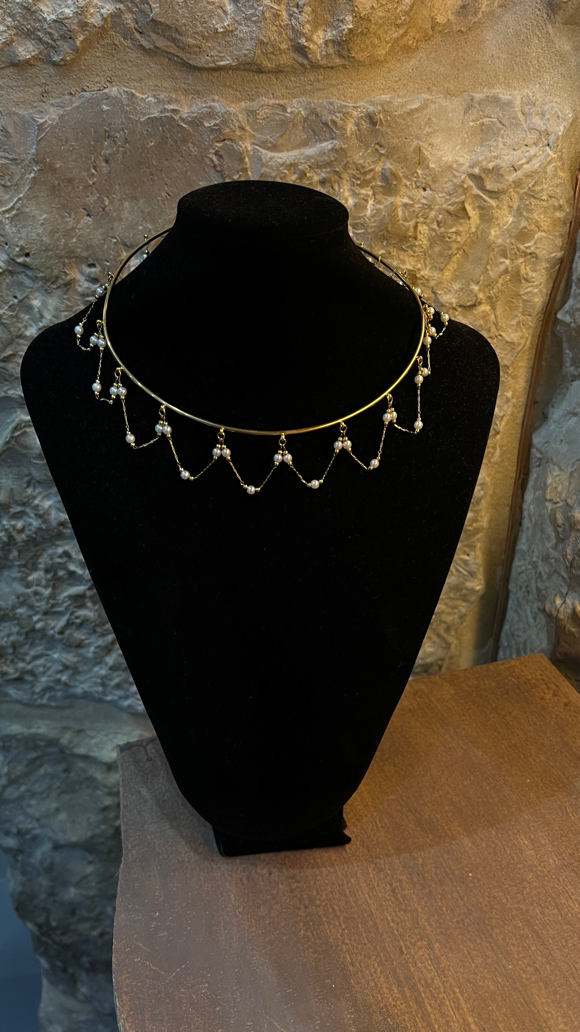 Choker con perlas ajustable. Fabricado en acero inoxidable