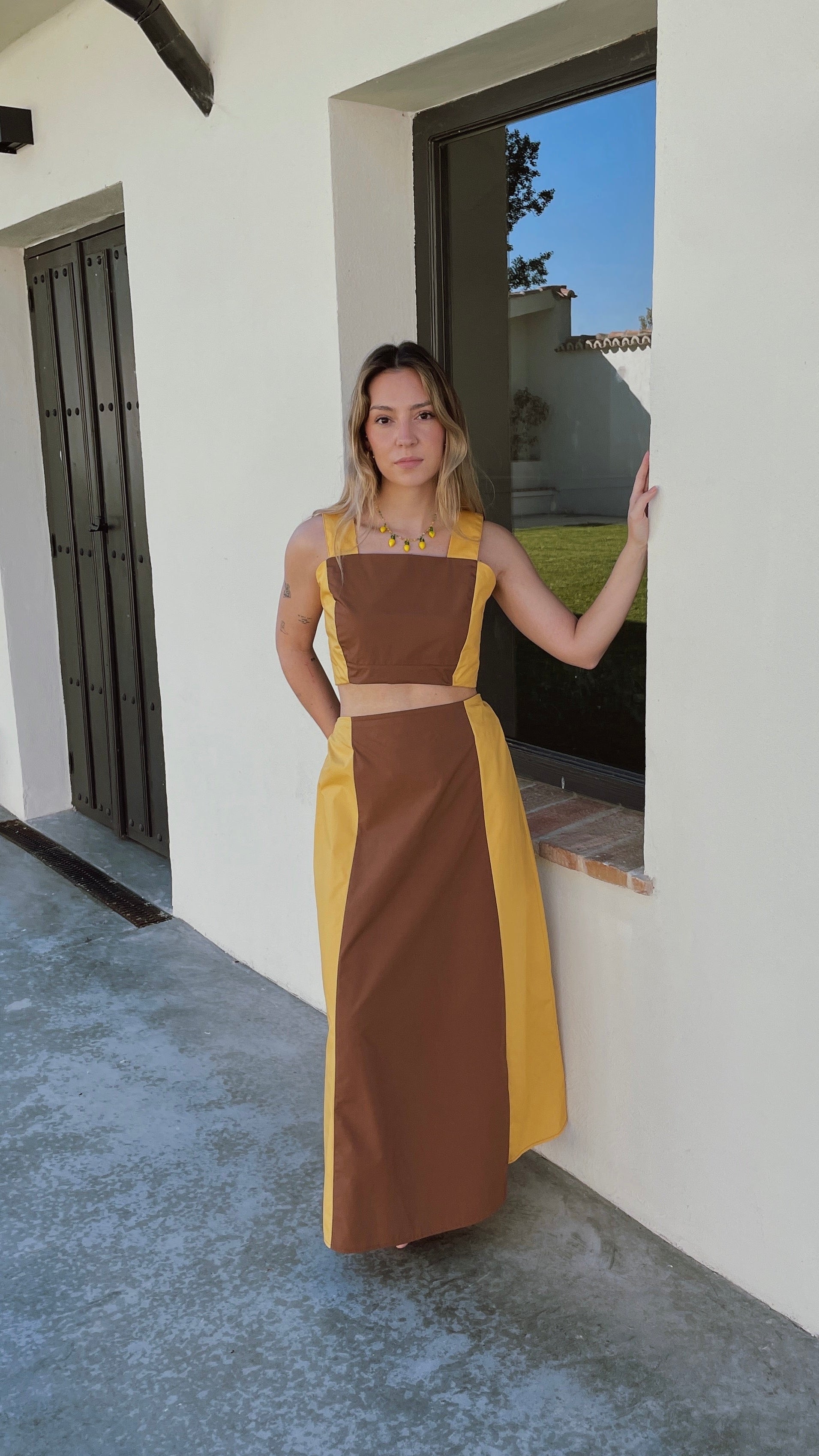 Tanto la falda como el top tienen nido de abeja y goma, respectivamente, en la parte de atrás, para que se ajuste perfectamente al cuerpo.