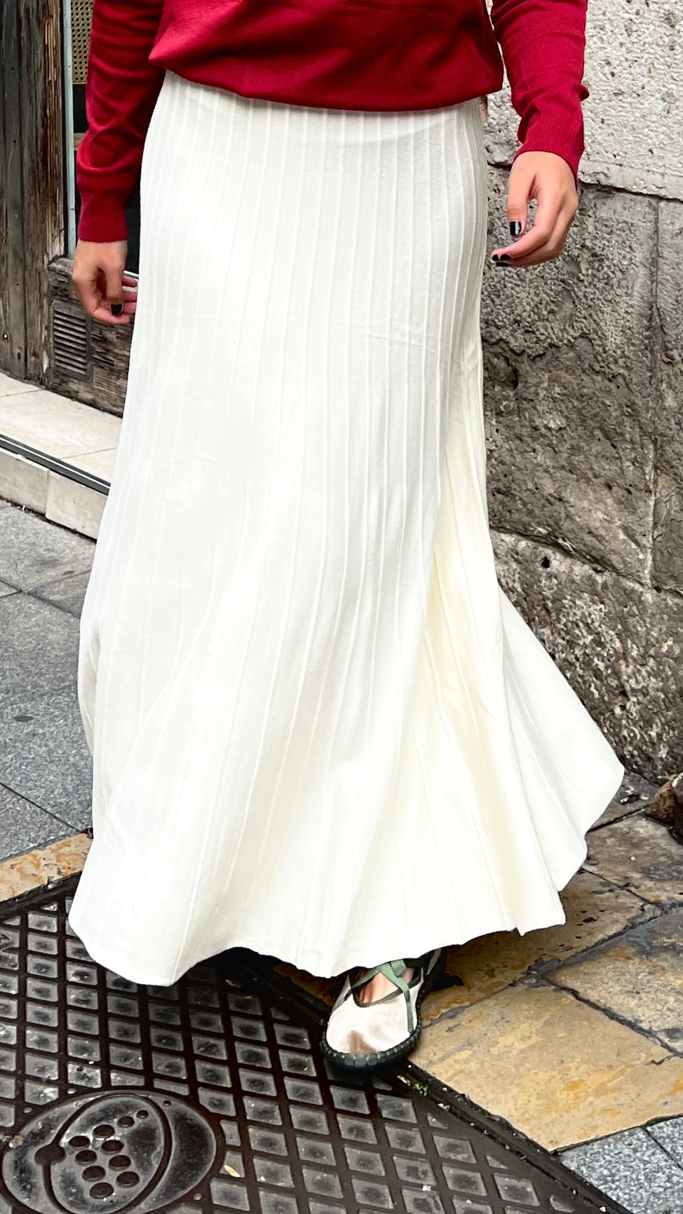 Falda de punto con corte evasé, confeccionada en un punto muy rico y calentito 100% viscosa.