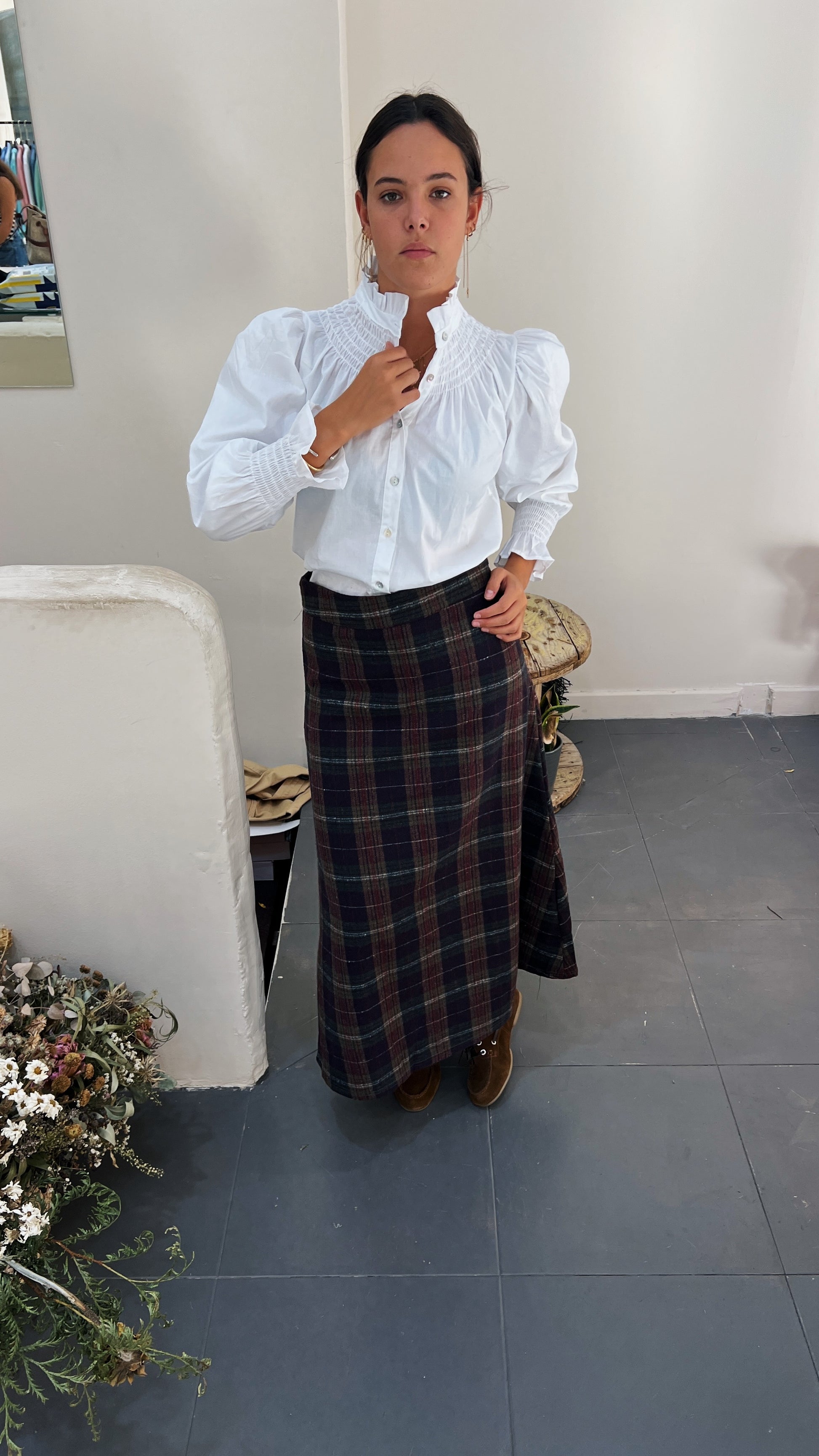Falda corte evasé, estampada con un patrón muy favorecedor.